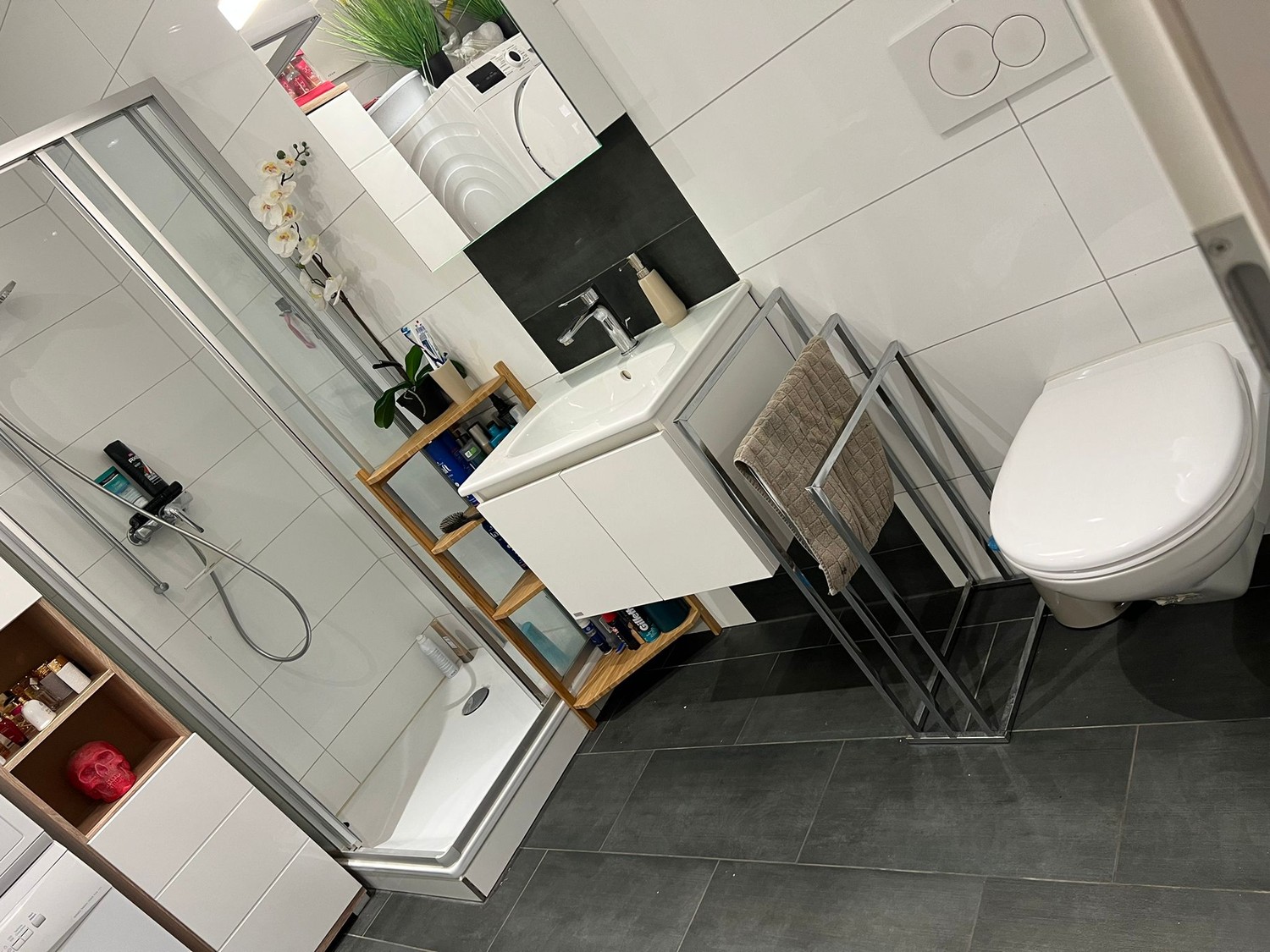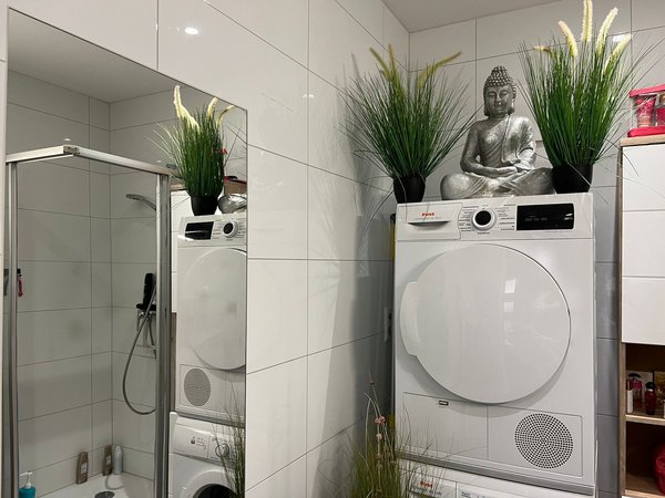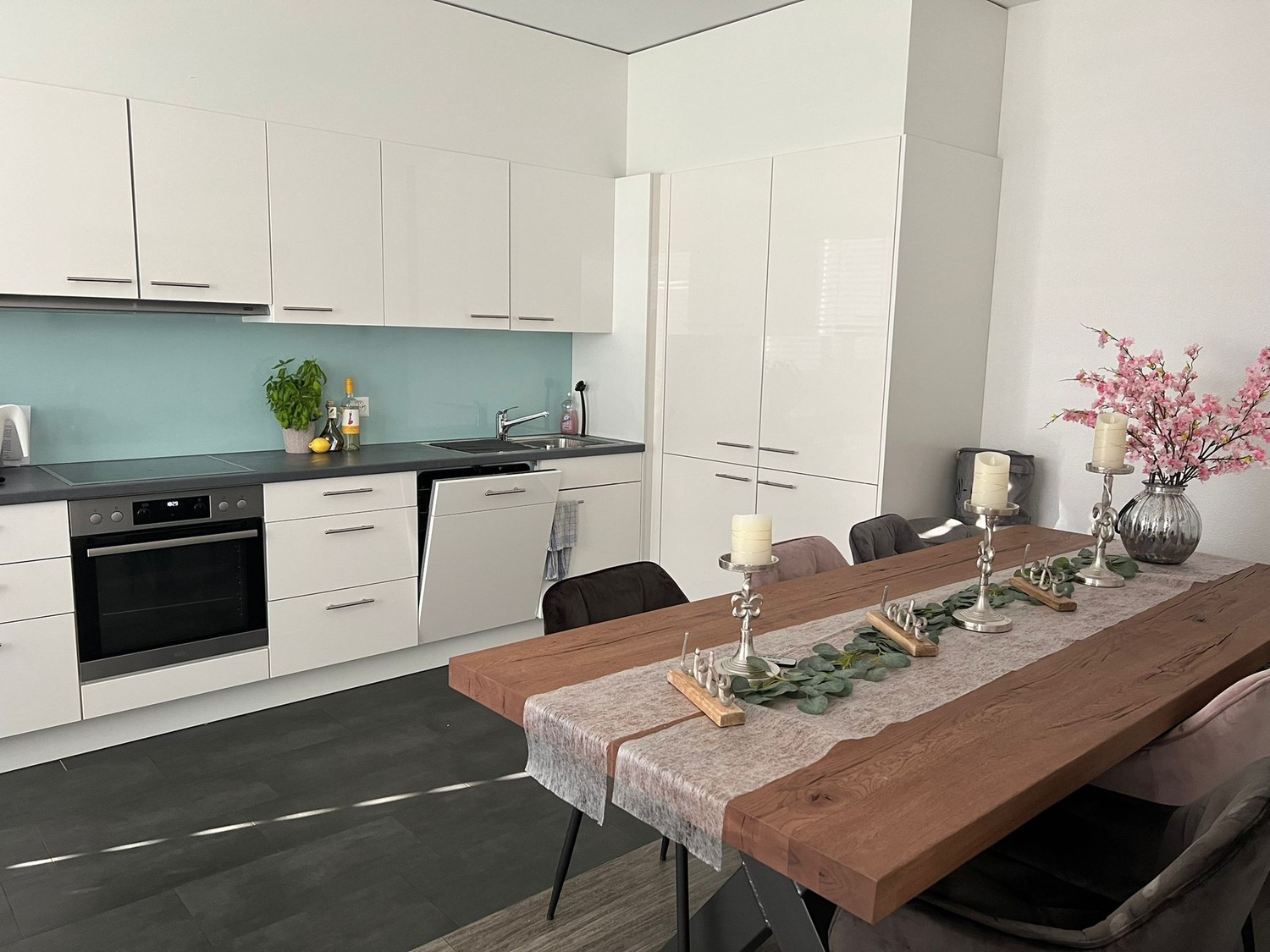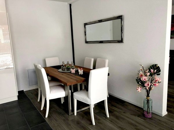 Die moderne, schöne Erdgeschoss-Wohnung bietet Ihnen einige Überraschungen an. Separater Eingang, Raumhöhe über 3.00 m, Panoramafenster im Wohnzimmer sowie in der Küche/Esszimmer, Waschmaschine / Tumbler im Badezimmer und auf Wunsch Parkplatz bei der Wohnungstür.