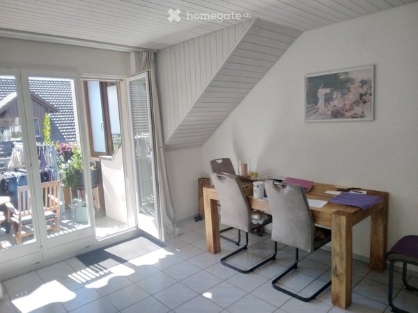 Besondere Ausstattung: Die Wohnung besticht durch ihre hellen, weissen Räume mit Fliesenböden, charmante Holzbalken im Dachgeschossraum und viele Dachfenster, die für eine wunderbare Lichtatmosphäre sorgen. Der private Balkon lädt zum Entspannen ein, während die ruhige Lage für Erholung sorgt. Im Sommer geniessen Sie viel Sonnenschein.