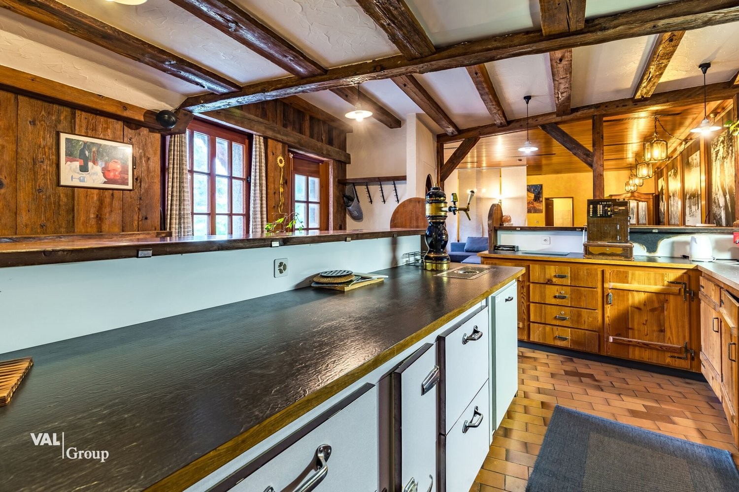 Ein besonderes Highlight ist das im Erdgeschoss gelegene, ehemalige Restaurant Des Alpes, das nahtlos in die Struktur des Hauses integriert ist. Heute dient es als ausgebaute Wohnung mit separaten Räumen, Kellern und einem stattlichen Saal - ideal für die Weiterführung als Airbnb, als Atelier, Seminarraum oder für kreative Wohnideen. Die Nutzfläche umfasst hier insgesamt rund 168 m².