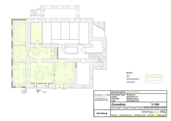 Die Fläche eignet sich für unterschiedliche gewerbliche Nutzungen wie Büro, Praxis, Atelier, Studio oder Showroom.