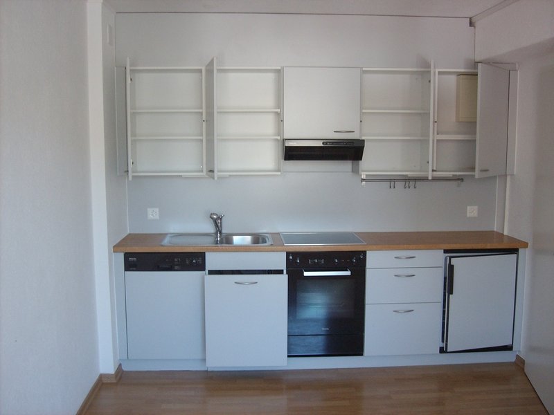 Die separate Küche ist mit einem Glaskeramikherd, Backofen, Kühlschrank sowie Geschirrspüler ausgestattet und bietet ausreichend Platz für einen Esstisch für bis zu vier Personen.