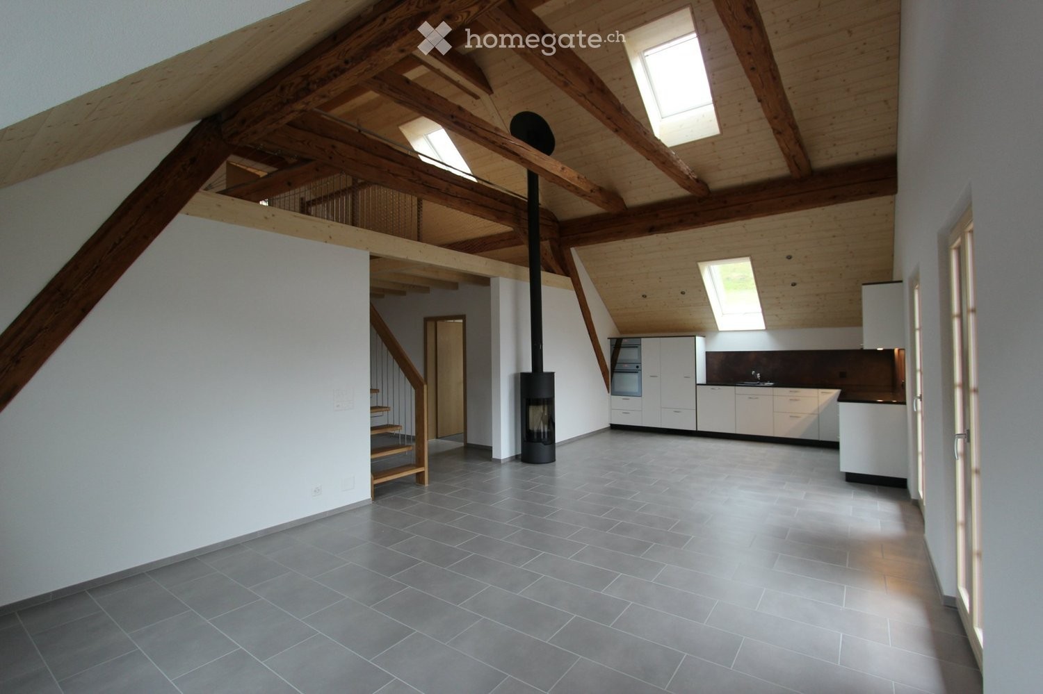 Die Traum-Wohnung befindet sich im Dachgeschoss und hat 145 m2 Wohnfläche. 114 m2 im im DG und 31 m2 auf dem Galeriegeschoss. Der Balkon ist 12 m2 gross. Die offene und helle Küche hat einen Backofen und einen Steamer eingebaut. Eine eigene Waschmaschine und ein eigener Tumbler sind im Badezimmer integriert. Die ganze Wohnung ist mit Bodenheizung ausgestattet. Zur Wohnung gehört ein eigenes Kellerabteil.
