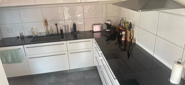 Erdgeschoss: Grosszügiger Eingangsbereich mit Garderobe, eine moderne Küche mit Induktionsherd, Geschirrspüler und grosszügiger Arbeitsfläche.
