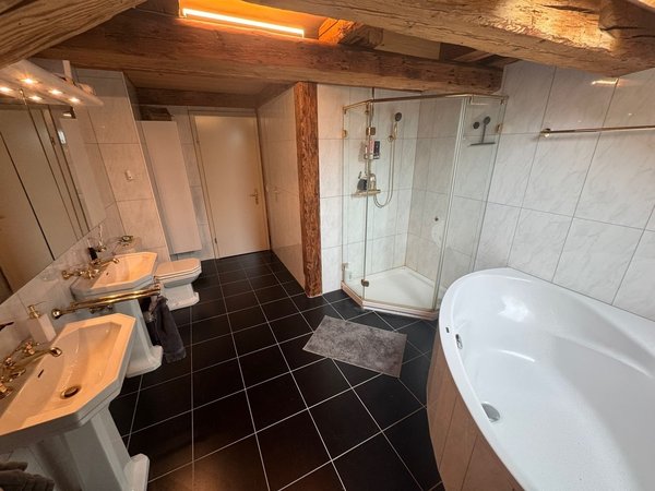 Stock: Zwei Schlafzimmer, ein kleines Wohnzimmer und ein grosses Badezimmer mit Badewanne, Dusche und WC.