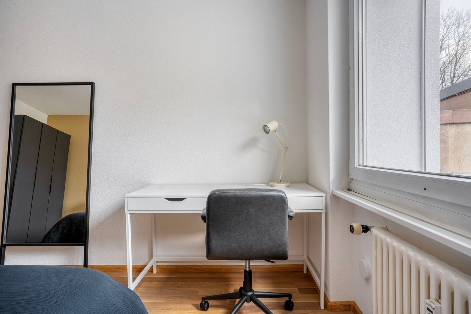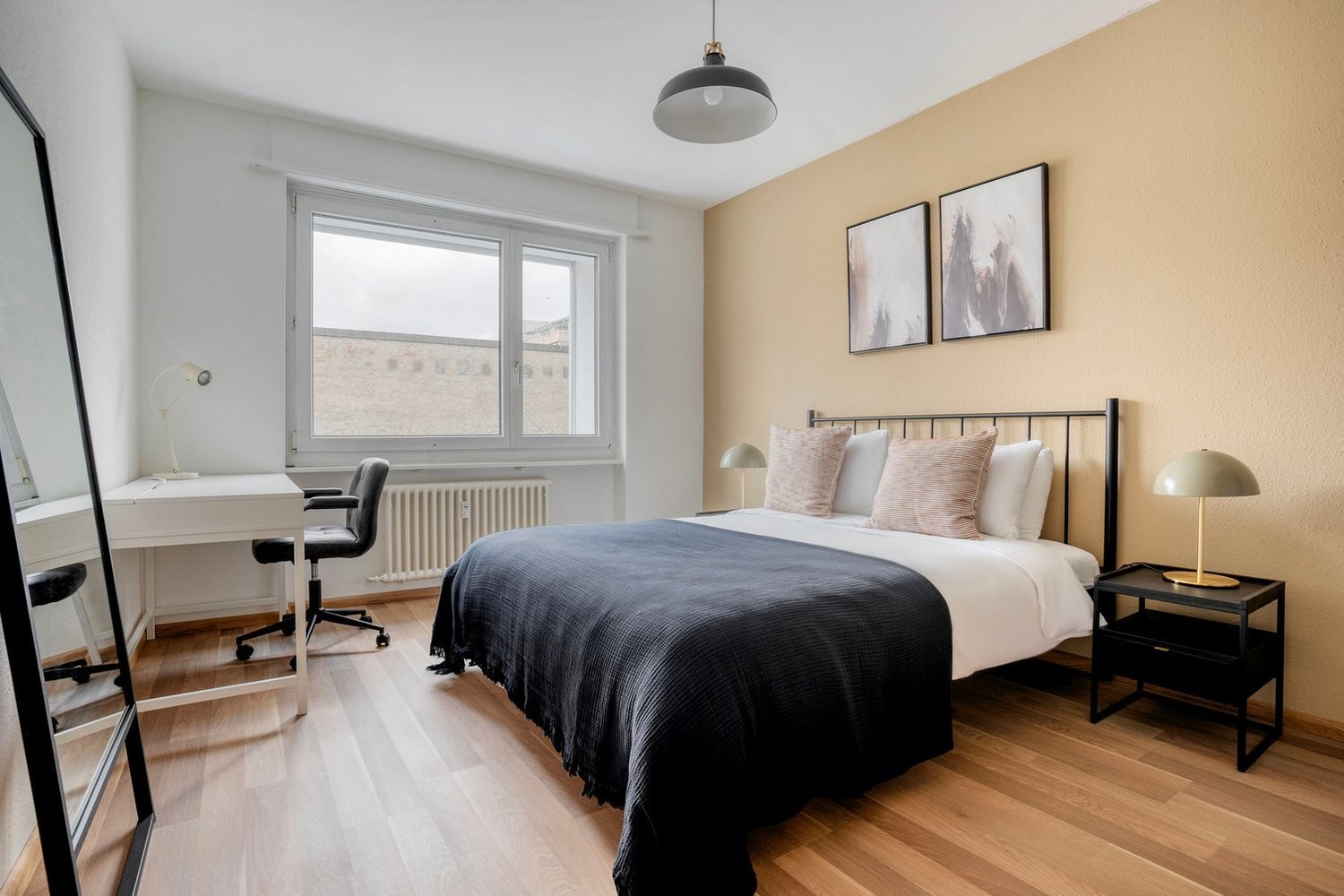 Kommen Sie an und beginnen Sie ab dem ersten Tag zu leben in Basel mit diesem Gemütlich Zwei-Schlafzimmer Blueground-Wohnung . Sie werden es lieben, nach Hause zu kommen in dieses liebevoll eingerichtete, schön gestaltete und voll ausgestattete Haus Gundeldingen . (ID #BSL64)