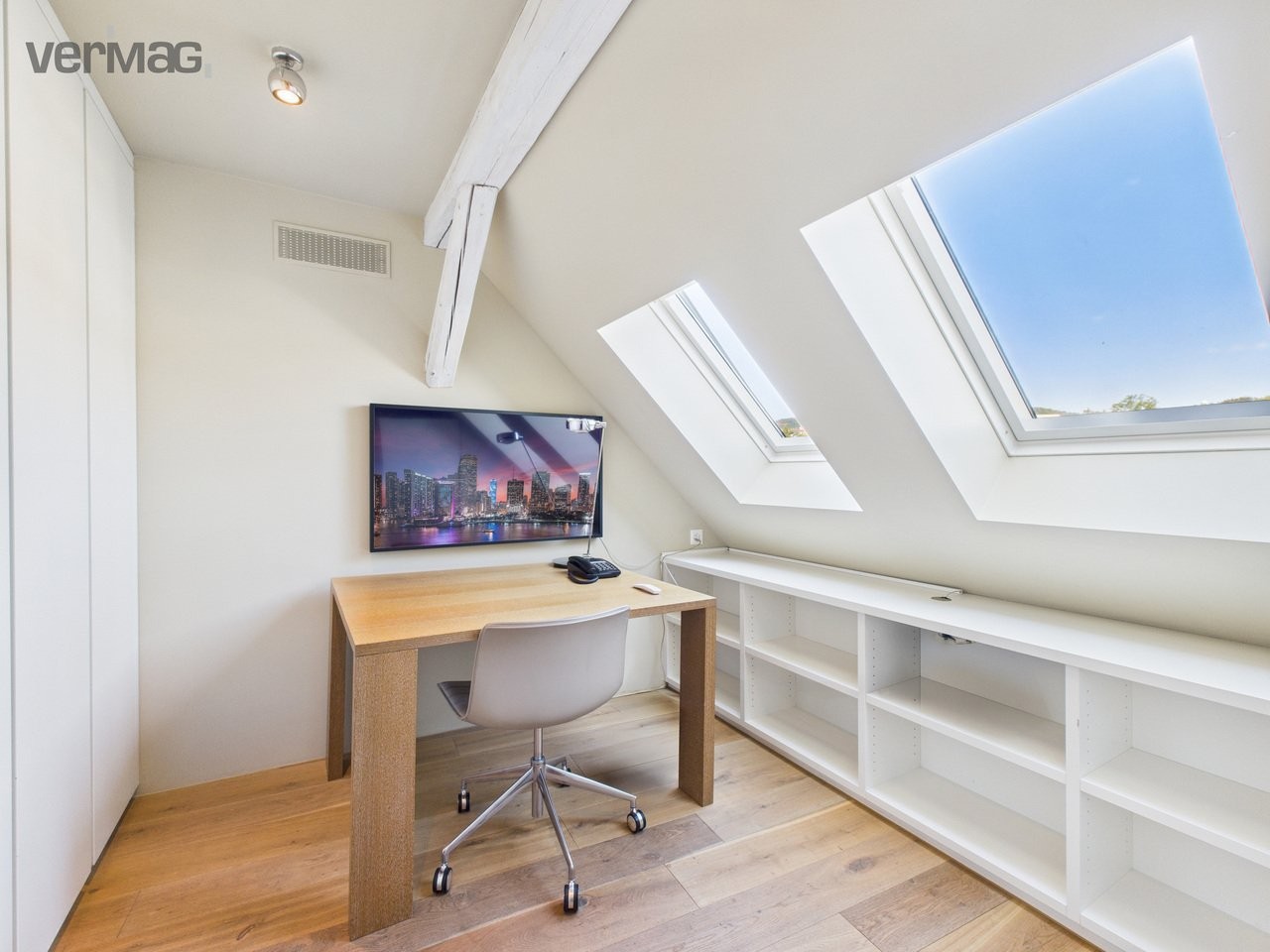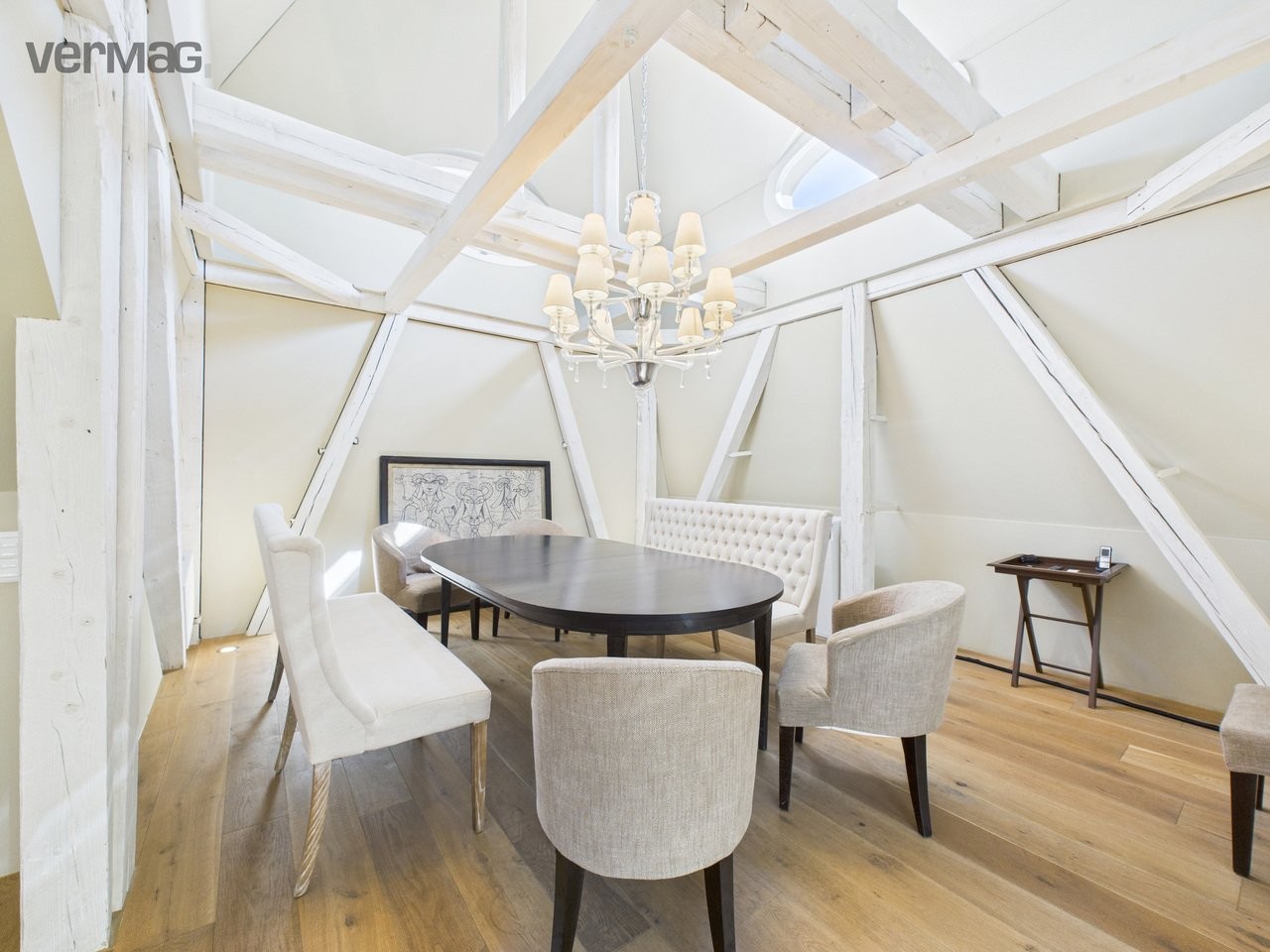 Spanning 236 m² over three floors, the apartment features a bright living room with fireplace, an elegant kitchen with dining area, two bedrooms each with dressing rooms, a study, fitness area, two separate toilets, and a stylish bathroom. The 60 m² rooftop terrace provides breathtaking panoramic views over the city rooftops, Lake Zürich, and the Alps - a truly unique retreat above the city.