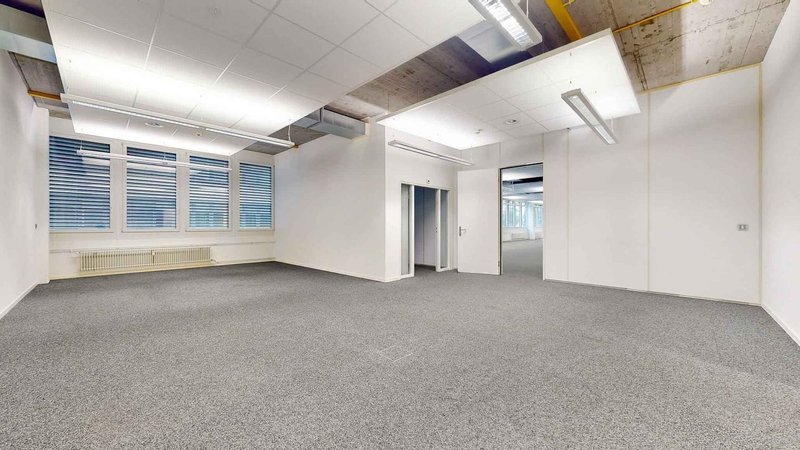 Flur verbunden sind und einen separaten Gebäudeteil bilden. Alle verfügen über die Grundausbauten; Bodenbelag, Beleuchtung, elektrische Sonnenstoren. Ein Doppelter Boden ermöglicht individuelle Verkabelungslösungen: