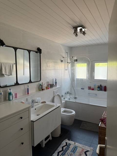La maison comprend 3 chambres, un bureau, un grand séjour avec cheminée, une cuisine moderne entièrement équipée, ainsi q?une salle de bain avec lave-linge et sèche-linge. Vous pourrez profiter de toute la maison ainsi que du jardin de 350 m² pendant l?absence de la famille (environ 3 mois).