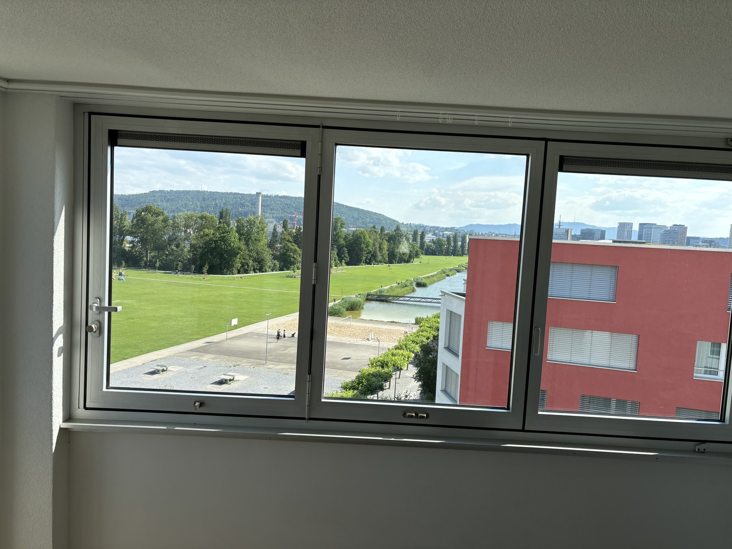 1.5 Zimmer Wohnung zu vermieten per ende Januar, die Lage ist sehr schön gelegen am ende des Glattparks mit einem guten Blick auf die Grünfläche des Opfikerparks.