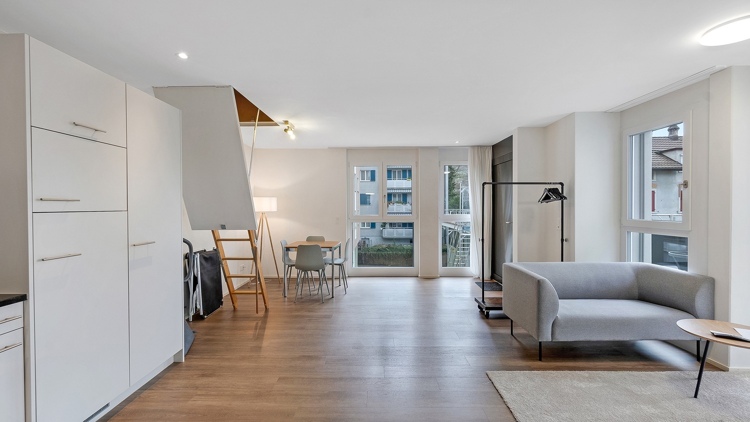 An zentraler Lage in Winterthur vermieten wir eine hochwertig möbliertes 2.5-Zimmer-Apartment. Das Apartment ist in einem modernen und grosszügigen Mehrfamilienhaus in Winterthur. Grosszügige Fenster garantieren einen lichtdurchfluteten Raum mit angenehmer Wohnatmosphäre. Die Wohnung verfügt zudem über eine grosse Dachterrasse, moderne Küche und einem praktischen Grundriss.