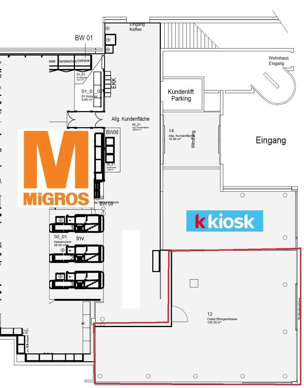 Aktuell befindet sich auf der Fläche das Migros-Outlet.
