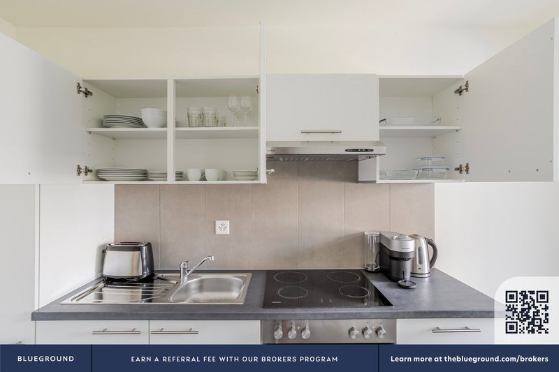 Durchdachtes Design mit maßgeschneiderten Oberflächen und moderner Einrichtung, und eine voll ausgestattete Küche, Sie werden das „Ich bin zu Hause“-Gefühl mit diesem Blueground Wohnung genießen. Egal, ob Sie in Ihrem bequem Wohnzimmer die neuesten und besten Unterhaltungssendungen über den Smart-TV oder den kabellosen Premium-Lautsprecher streamen oder sich auf der hochwertigen Matratze ausruhen – Sie werden sich in alles verlieben, was dieses Basel-Matthäus Wohnung zu bieten hat.