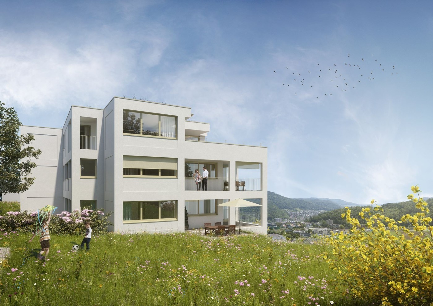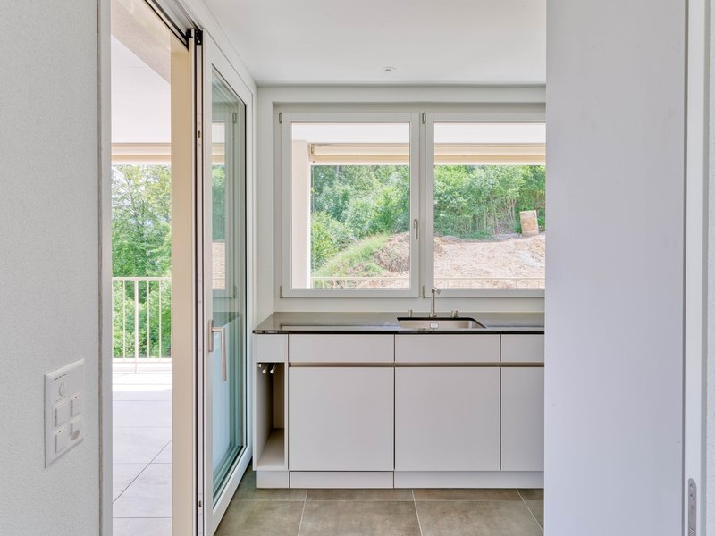 Die helle Wohnung punktet mit grossen, bodentiefen Fenstern, welche die Räume mit Licht durchfluten. Der grosse Balkon mit einer wunderschönen Sicht in die Weite und ins Grüne garantiert viele gemütliche Stunden. Der moderne Parkettboden trägt ebenfalls viel zum lichten und luftigen Ambiente bei. Die moderne Küche ist mit den neusten Haushaltgeräten ausgestattet. Ebenso verfügt die Wohnung über zwei Nasszellen (Dusche/WC sowie Bad/ WC) sowie einen Wäscheturm. Ein Keller bietet zudem viel zusätzlichen Stauraum. Der moderne Grundriss bietet viel Raum für eine zeitgemässe Einrichtung.