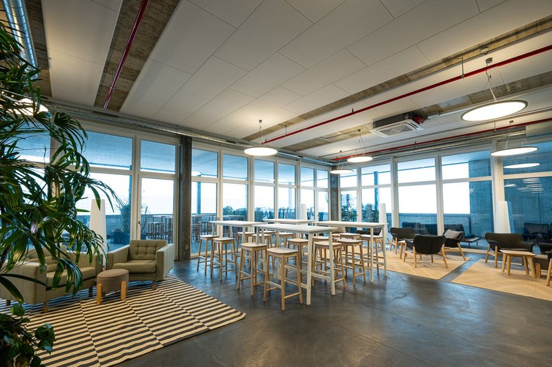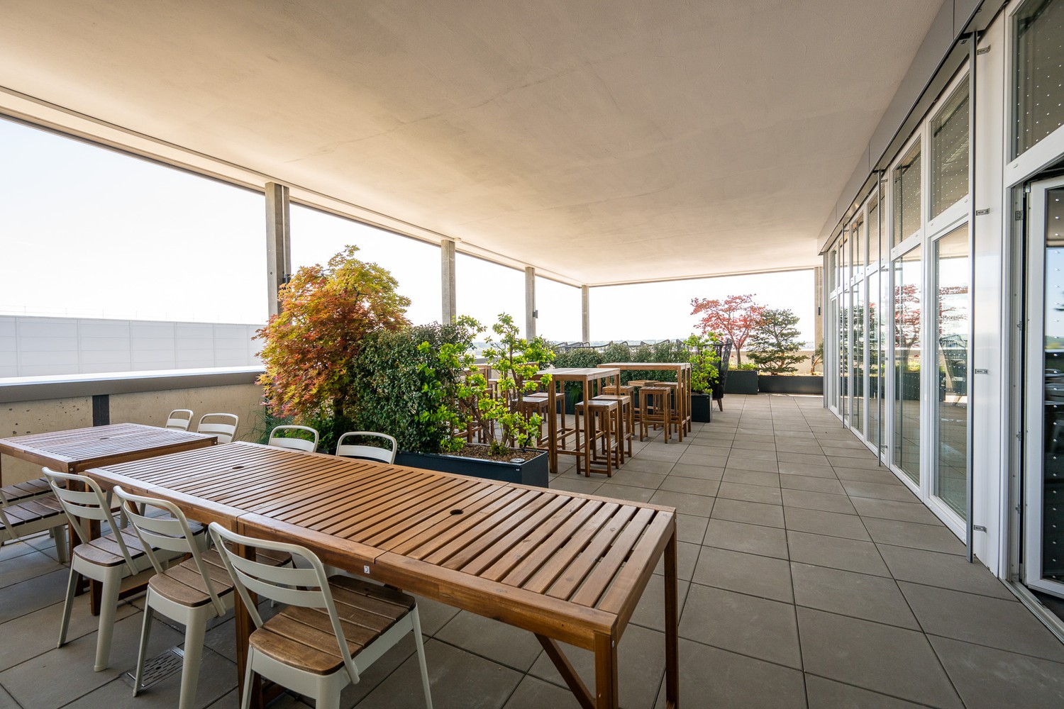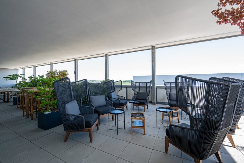 • Café Lounge ca 120 m2 und zusätzlich ca 100 m2 gedeckter Rooftop Terasse