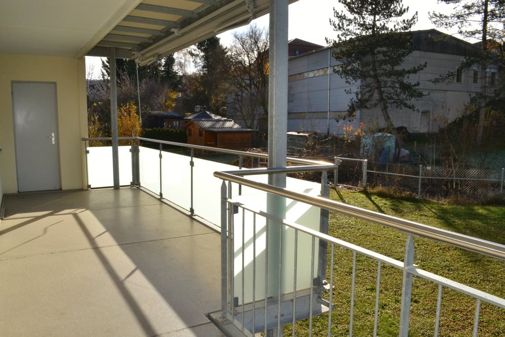 grosszügiger, sonniger Balkon (17.3 m2) mit Sicht ins Grüne