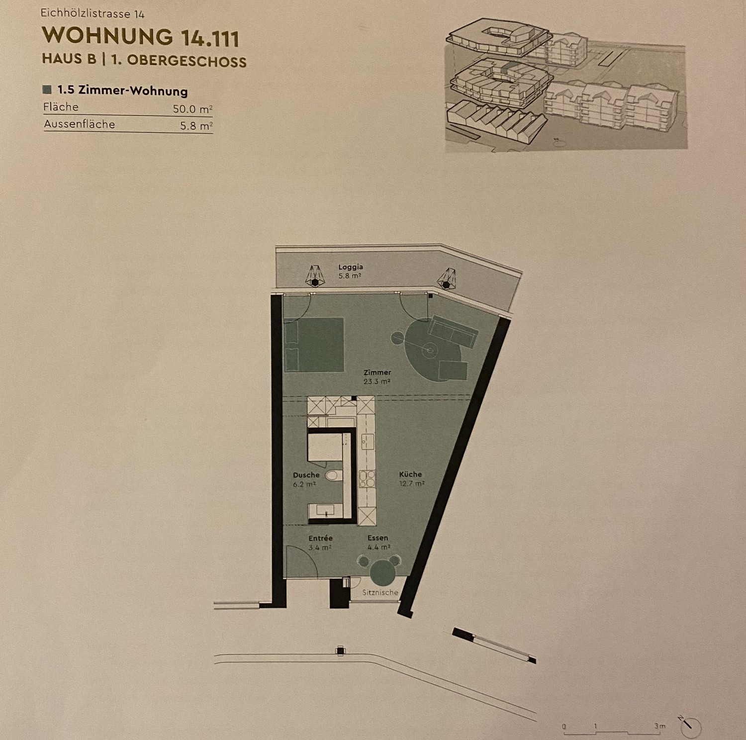 Die Wohnung befindet sich der Überbaung Eichhölzli im ersten Obergeschoss. Sie ist nach Norden ausgerichtet und wird morgens von schöner Sonne erfüllt. Der Balkon lädt zum Entspannen und Verweilen ein.