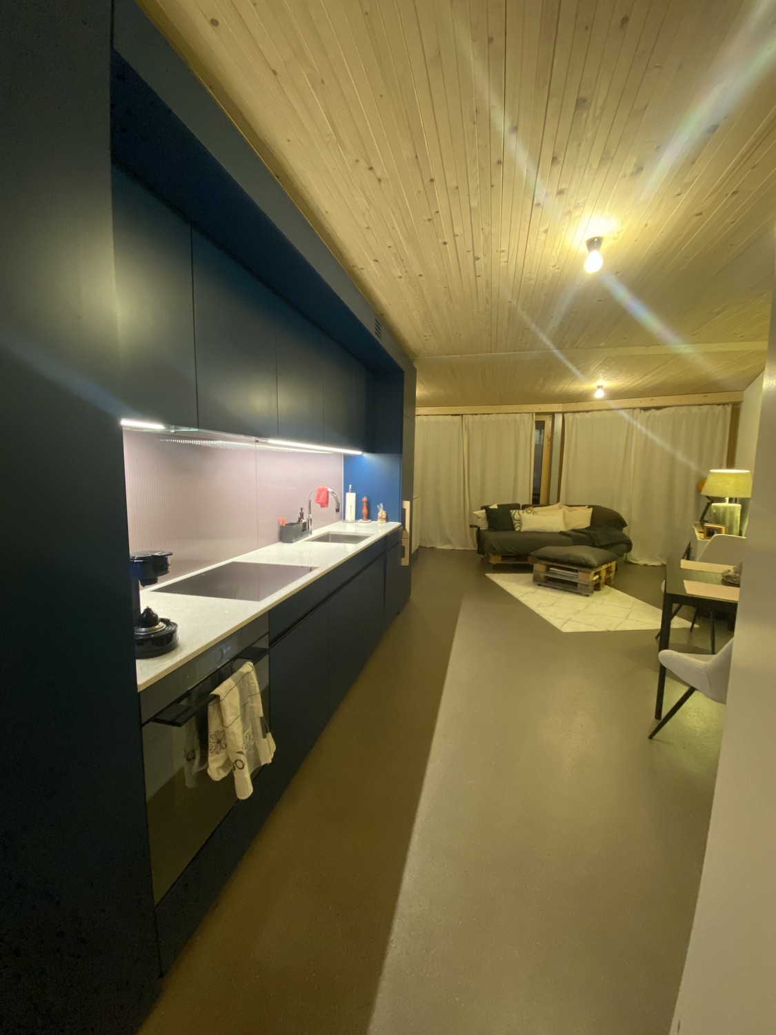 Die moderne Küche ist mit hochwertigen Geräten von V-Zug ausgestattet und verfügt zusätzlich über einen Quooker, der den Alltag besonders komfortabel macht.