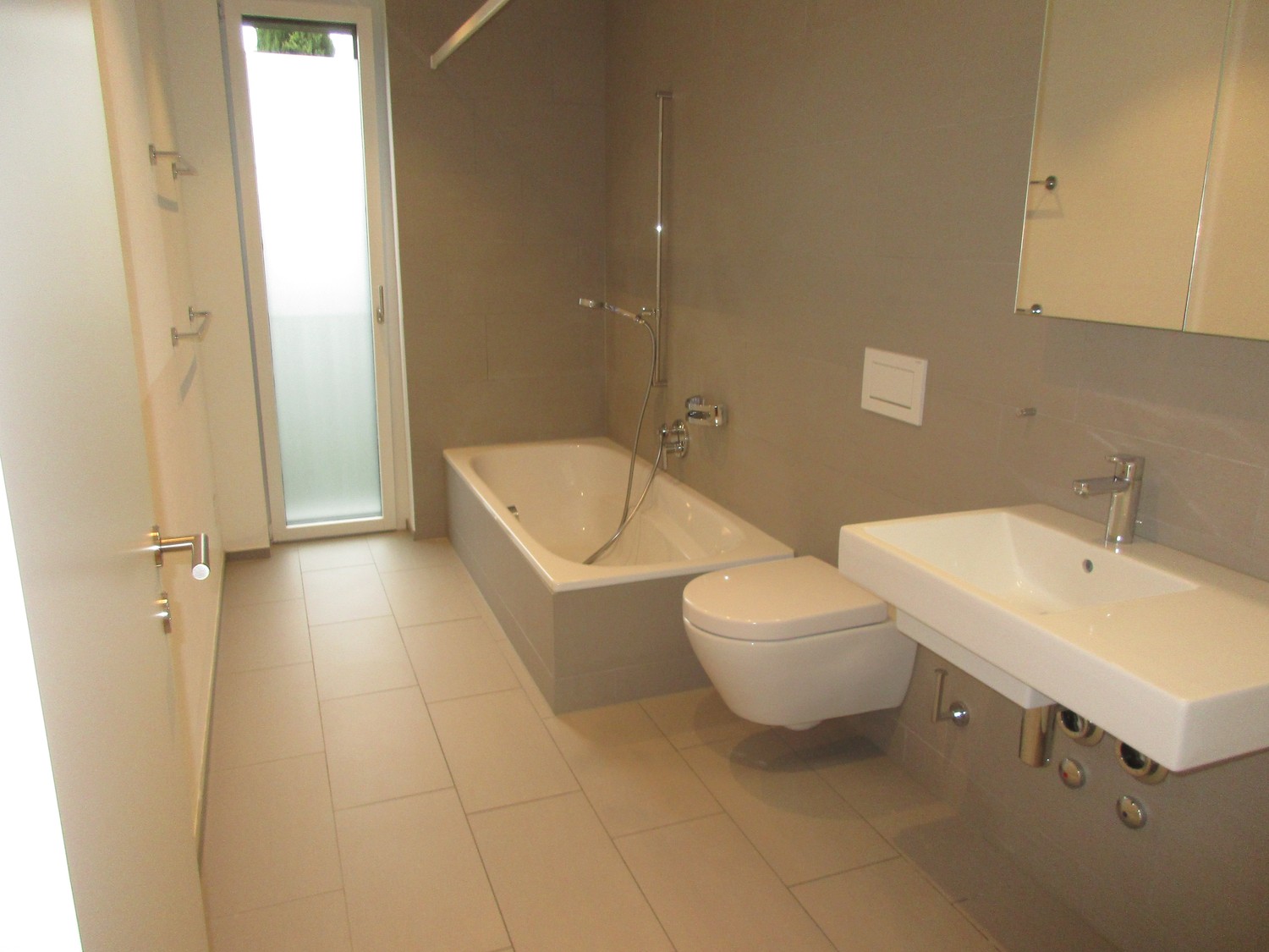 - Badezimmer mit Badewanne, Lavabo inkl. Spiegelschrank, WC und Fenster