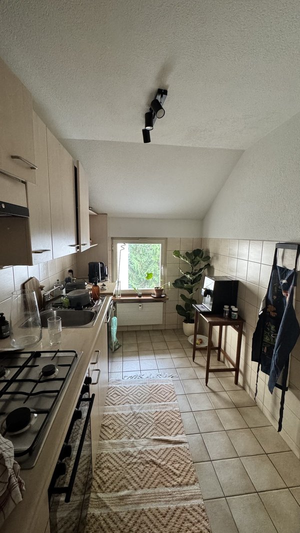 The apartment is very centrally located. It is just a 5–7 minute walk from Basel SBB with tram lines 1 and 2 stopping right outside the building. Even though it’s on a main street, it’s surprisingly quiet once the windows are closed.The apartment is fully furnished, well equipped, and filled with lots of plants. There’s also a coffee machine for slow, cozy mornings before work or uni. You’d only need to furnish your own room. If you’re looking for a place urgently, we’re happy to provide an air mattress for the first few days.You’ll be sharing the kitchen, living room, hallway and main bathroom (shower) with us. The apartment also has its own laundry tower (washer + dryer), which is super convenient. There is an additional toilet attached to our bedroom upstairs that we’d like to keep private.