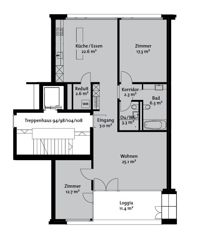 Der durchdachte Grundriss dieser Wohnung lässt Ihnen die Freiheit, sich individuell einzurichten und auf der grossen Terrasse Ihren Feierabend zu geniessen. Dank der Raumaufteilung verfügt die Wohnung über geräumige Zimmer und viel Stauraum. Weiter bietet Ihnen diese Wohnung folgende Vorzüge: