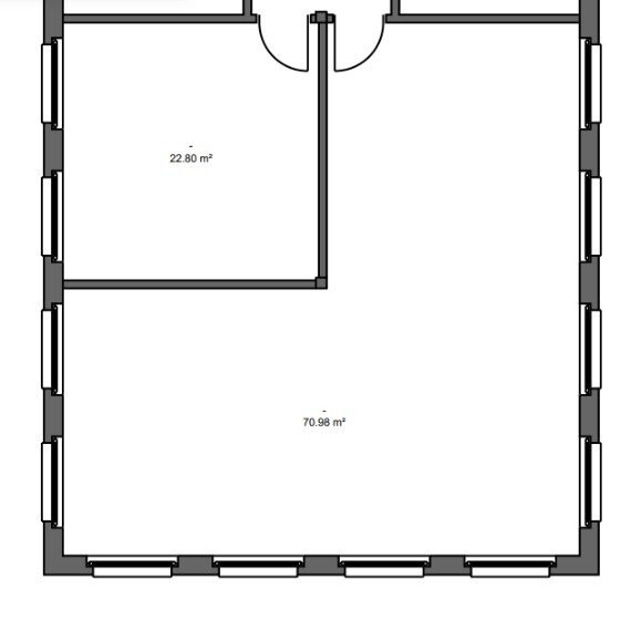 Die Fläche liegt im 1. Obergeschoss. Die Fenster sind alle ebenfalls so konzipiert, dass der Raum mit Tageslicht durchflutet wird. Die Fläche eignet sich ideal für Ateliers, Büros oder Praxen.