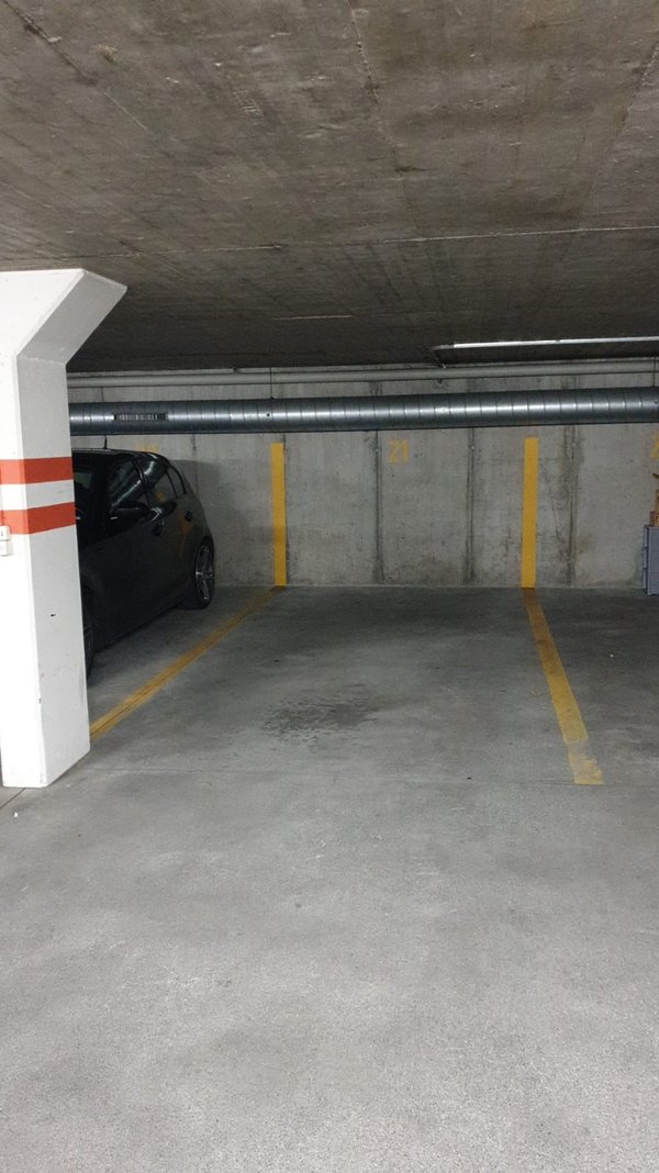 Der Einstellplatz gehört zur Liegenschaft Engeloostrasse 14 in Zufikon. Der Zutritt zur Einstellhalle erfolgt aber durch das Gewerbehaus Leitronic.