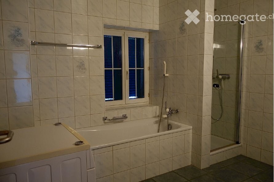 Badezimmer mit eigener Waschmaschine und Tumbler.
