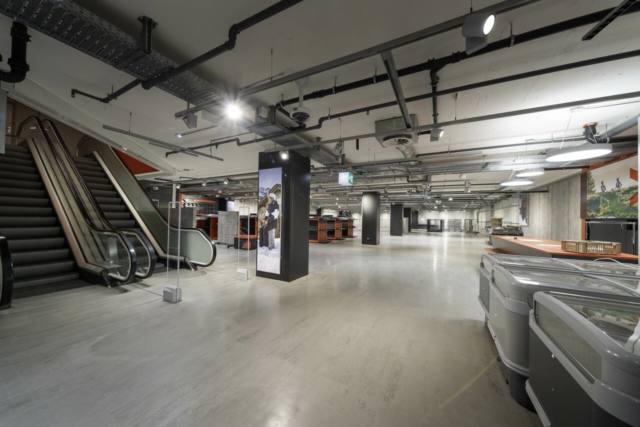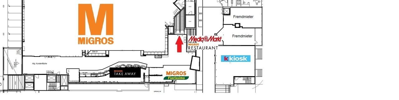 Mit 673m² bietet die Fläche eine geräumige, gut nutzbare Grundfläche. Die Fläche befindet sich im Untergeschoss , der Zugang erfolgt über eine Rolltreppe oder über den Kundenlift. Der Zugang zur Fläche befindet sich direkt am Anfang des Centers, zwischen Haupteingang und Migros, und ist somit stark frequentiert .