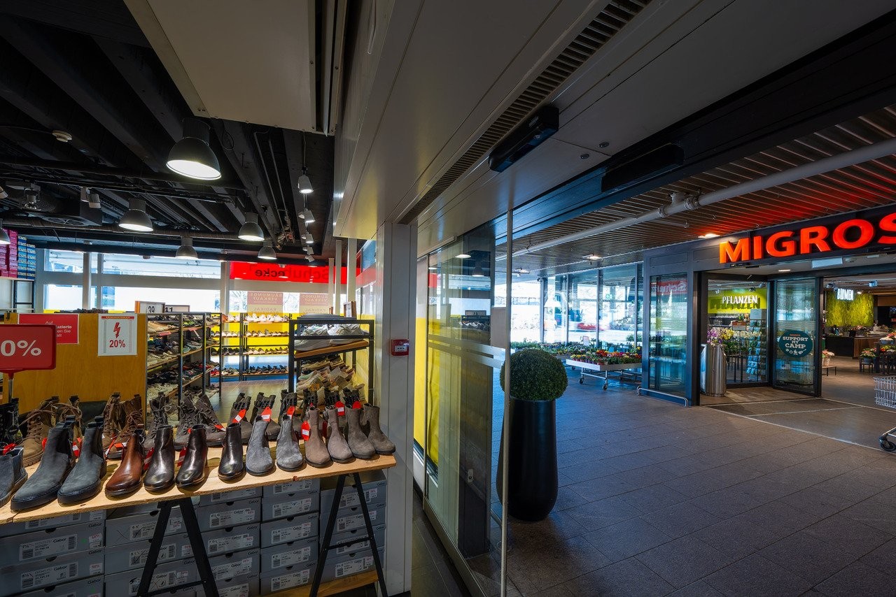 Diese gut geschnittene Ladenfläche befindet sich beim Migros Center Füllinsdorf-Schönthal und eignet sich ideal für Ladenkonzepte, die auf eine hohe Sichtbarkeit setzen.