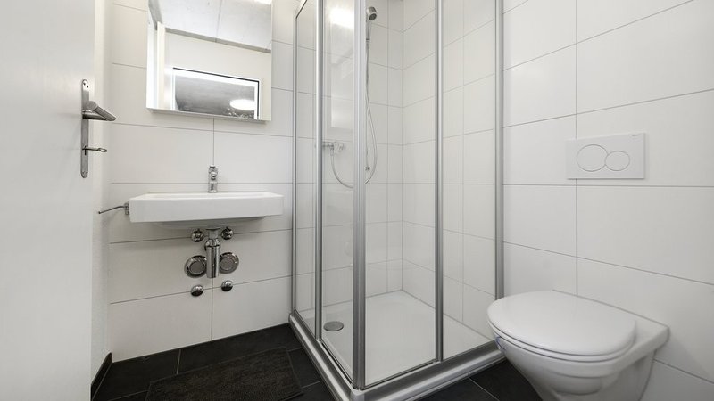 - Badezimmer mit Plattenboden (DU/WC)