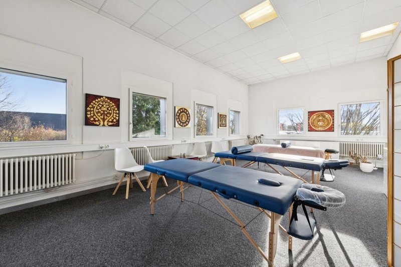 Die Räumlichkeiten verfügen über einen grossen Trainingsraum . Die zweite Einheit bietet einen Massageraum sowie schön ausgebaute, kleinere Büroräume , die den funktionalen Charakter der Fläche optimal ergänzen.