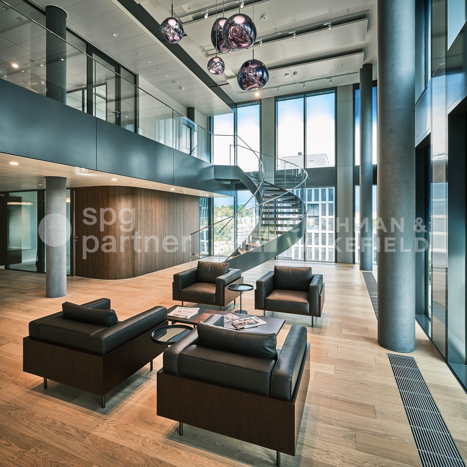 Réception, conciergerie et salles de conférences modernes.