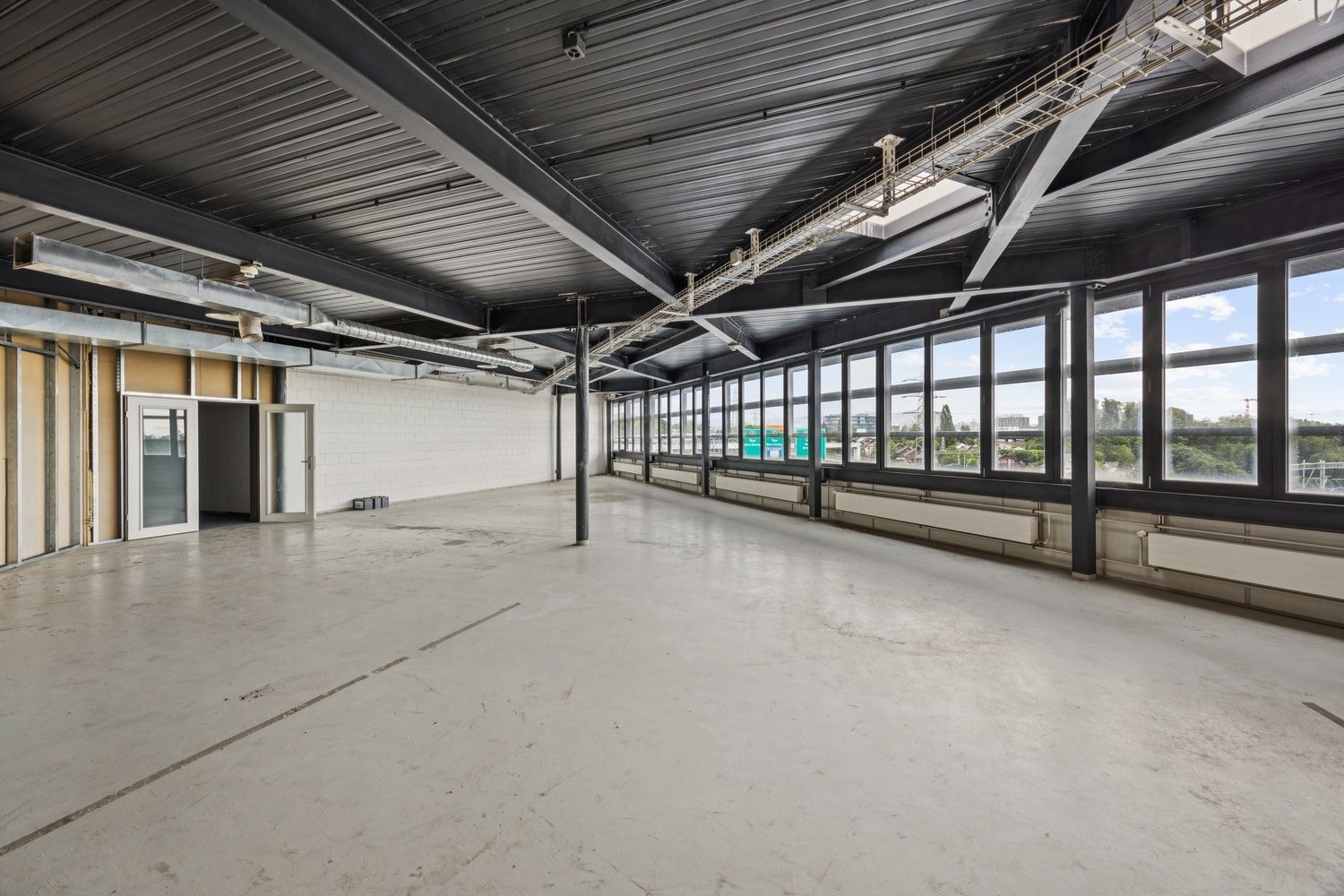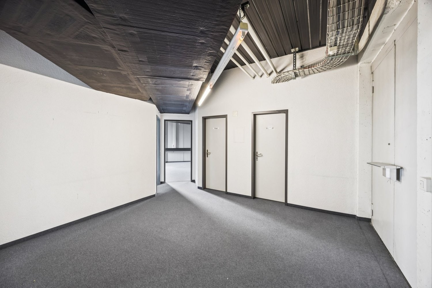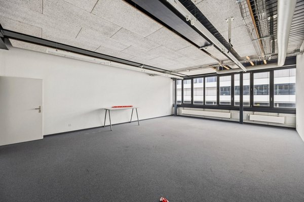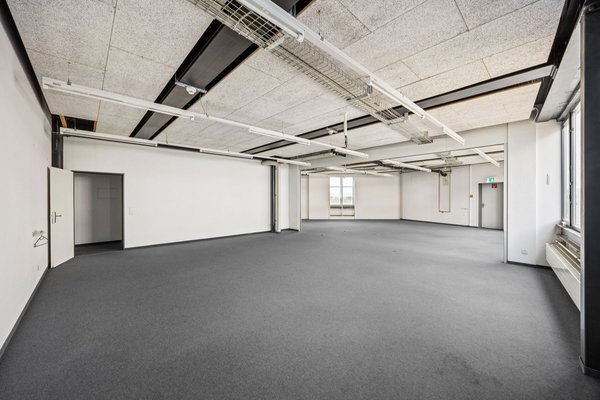 Die lichtdurchflutende und prominente Räumlichkeit kann je nach Bedarf als Grossraum verwendet werden oder auch in Einzelzimmer für diverse Zwecke (Büros, Lager, Werkstatt) unterteilt werden.