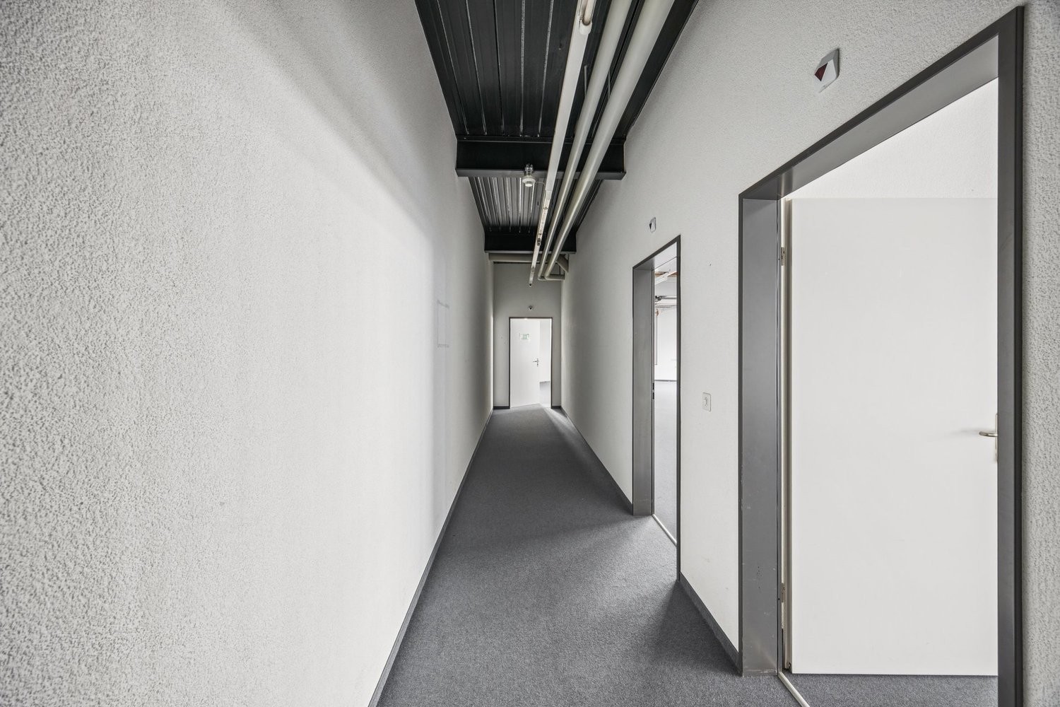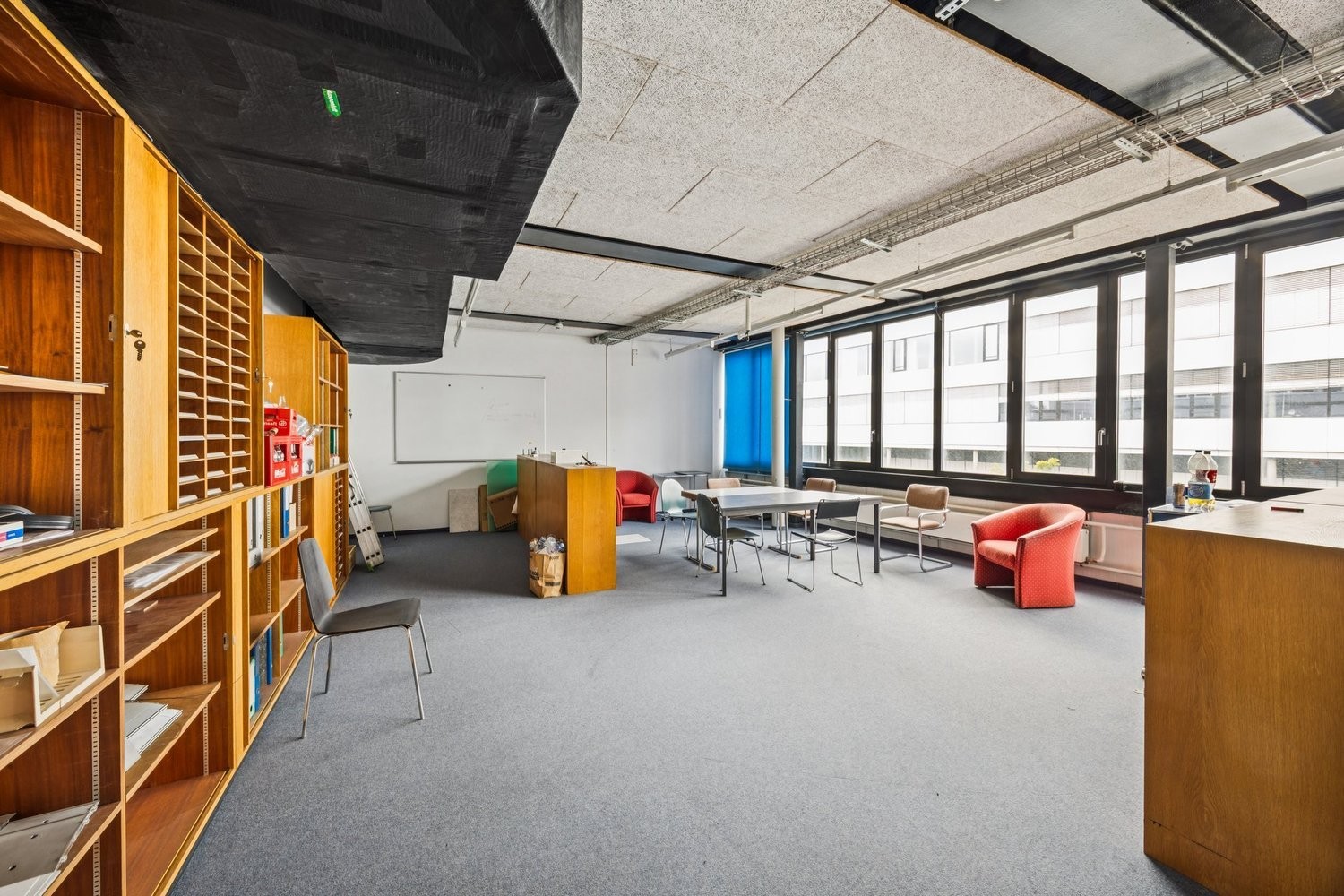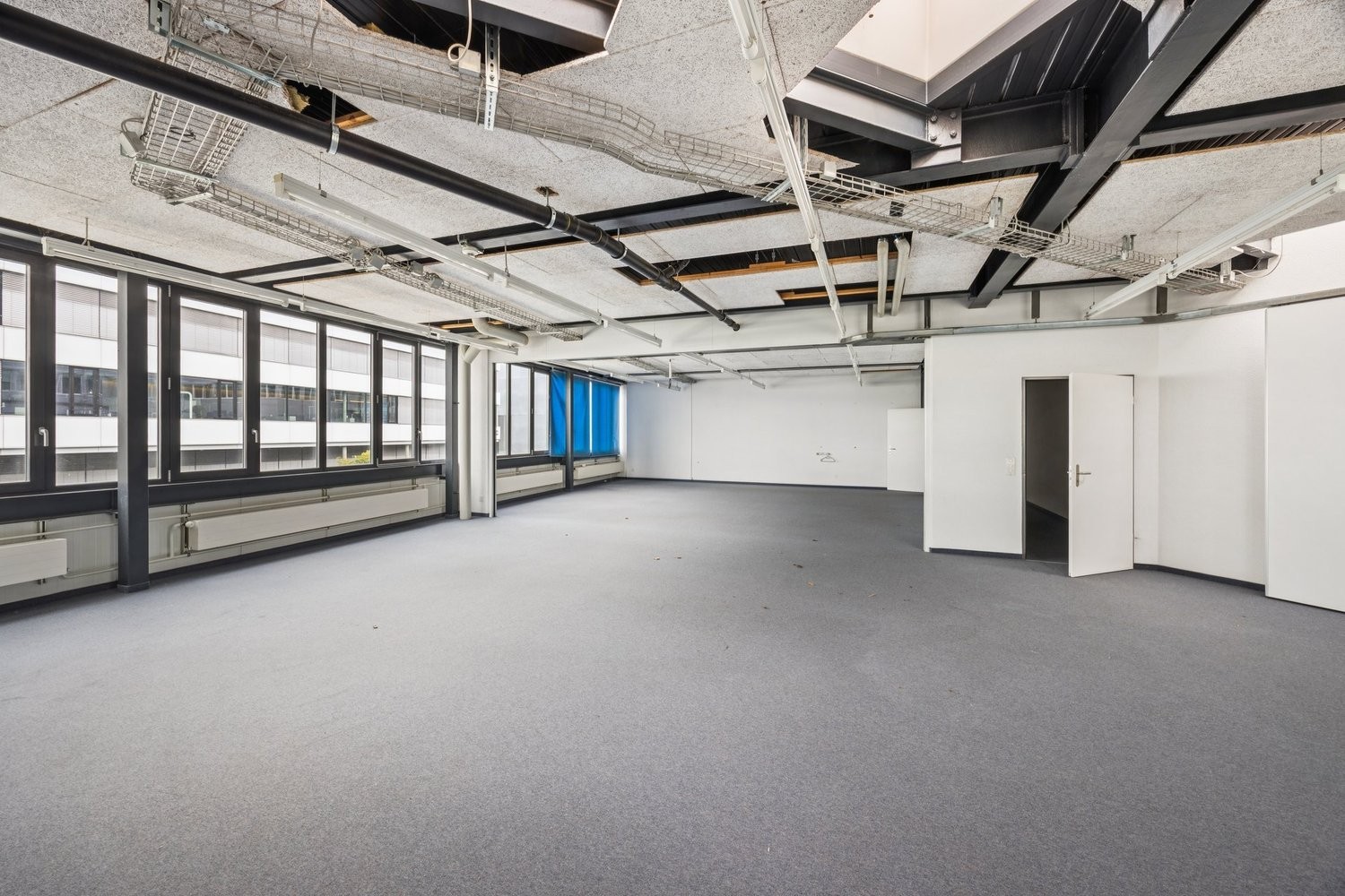 Die lichtdurchflutende und prominente Räumlichkeit kann je nach Bedarf als Grossraum verwendet werden oder auch in Einzelzimmer für diverse Zwecke (Büros, Lager, Werkstatt) unterteilt werden.