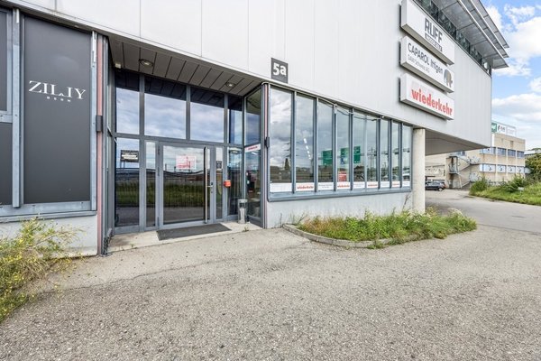 Einen eindrucksvollen Zugang für Kunden bietet der separate Eingang. Die modernen hellen Räume mit viel Tageslicht, dank Glasfront, ermöglichen vielfältige Nutzung.