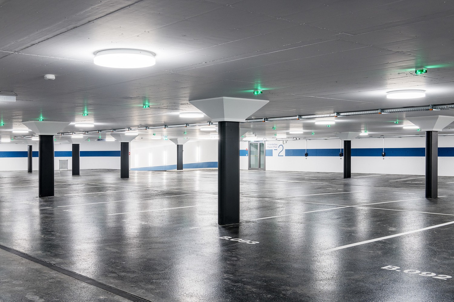 In der Tiefgarage Fabrikstrasse 7 oder Papieri-Ring 4 auf dem Papieri-Areal in Cham vermieten wir per sofort oder nach Vereinbarung Parkrechte. Der Mietzins beträgt CHF 180.– pro Monat exkl. MwSt. Der Zugang ist mit automatischer Kennzeichenlesung möglich. Ladestationen für Elektrofahrzeuge stehen ebenfalls zur Verfügung