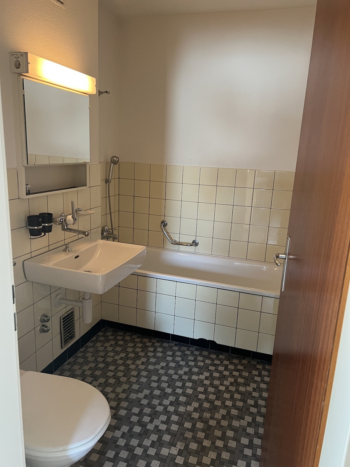 - Badezimmer mit Badewanne (neu mit Duschgleitstange/-vorhangstange, LED, neues WC)
