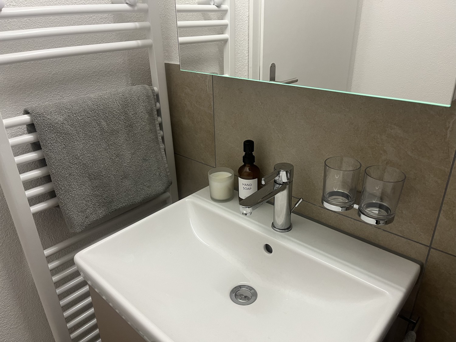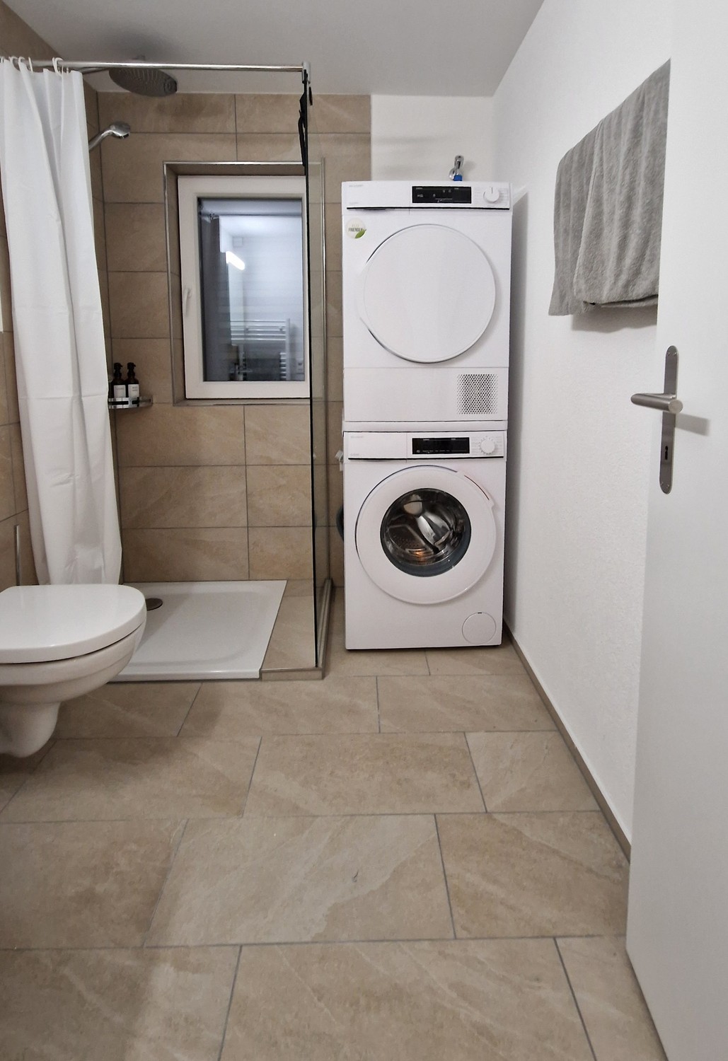 Eigenes Bad mit Waschturm (Waschmaschine und Trockner)