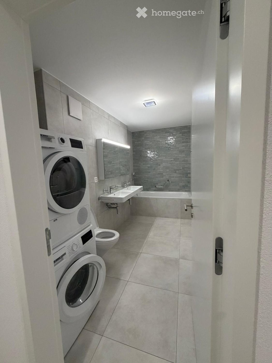 Salle de bains moderne + WC visiteurs.