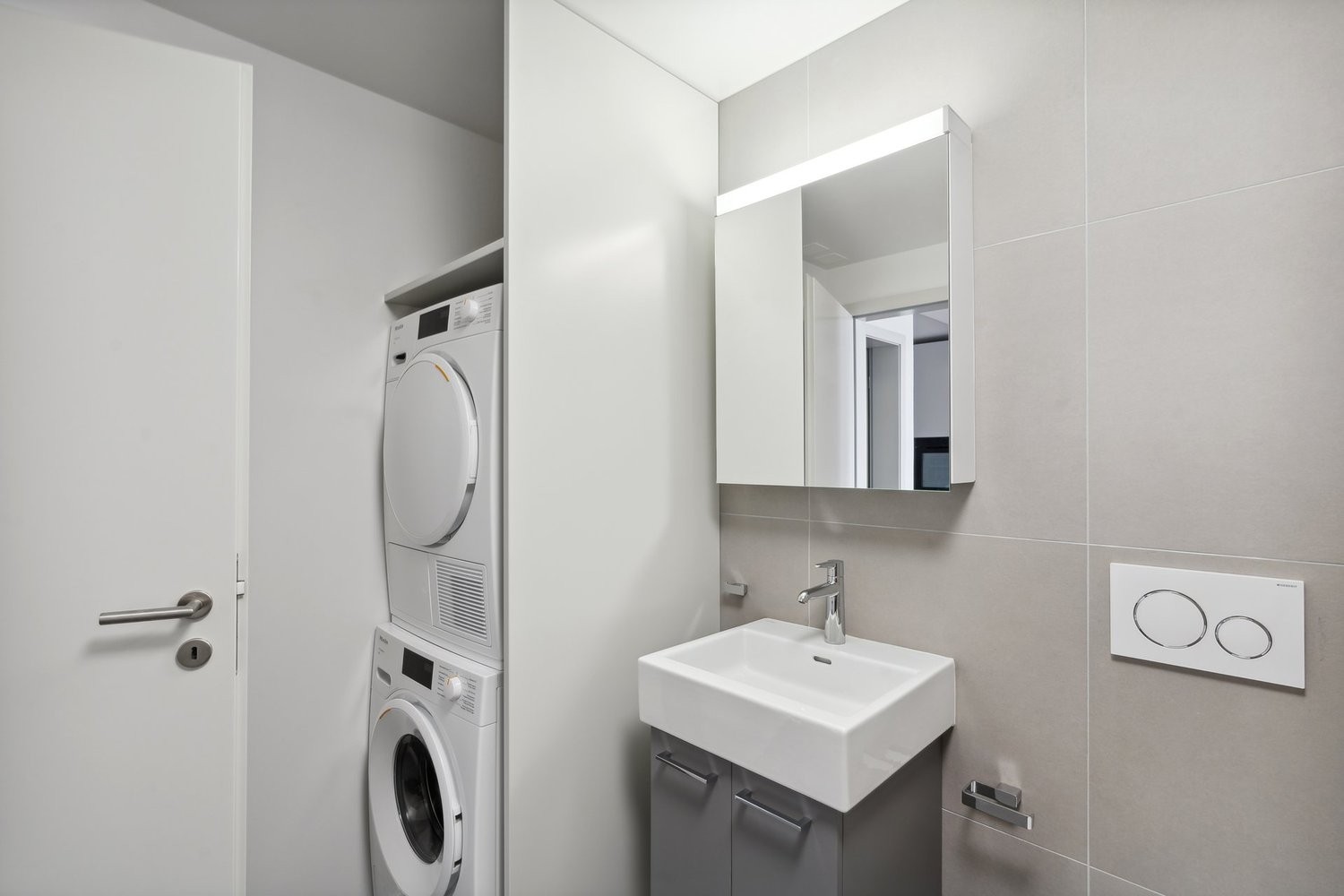 - Salle de bain avec douche à l'italienne et colonne de lavage de 2x8 kg. (lave-linge, sèche-linge)
