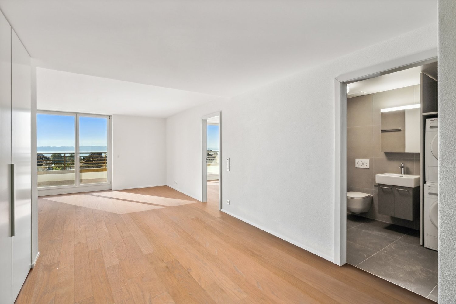 - Chambres, cuisine et séjour avec sol parquet chêne