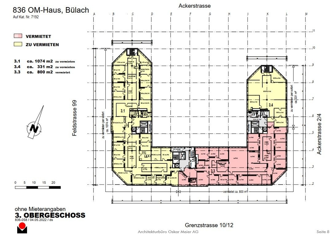 An zentrale Lage, in unmittelbarer Nähe zum Flughafen Kloten vermieten wir, per sofort oder nach Vereinbarung, eine grosszügige und helle Bürofläche im 3. OG mit ca. 331m2. Sanitäre Anlagen, Personen- und Warenlift sind im gemeinsamen Treppenhaus vorhanden.