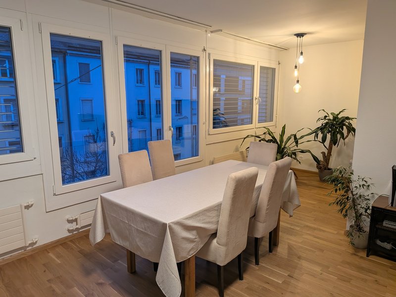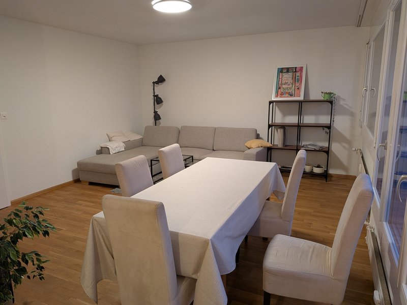 In unserer 2er-WG wird ab 1. April 2026 ein möbliertes Zimmer frei (Bett, Schreibtisch, Bürostuhl, 2 Kommoden). Die Wohnung ist modern und in sehr gutem Zustand: grosses Wohnzimmer (inkl. Tischkicker), moderne Küche, Bad + separates WC.