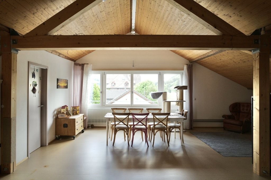 Wir vermieten ab 1. Juli 2026 oder nach Vereinbarung an der Feldeggstrasse 3 in Degersheim eine spezielle, grosszügige 5.5-Zi. Dach-Wohnung in der ehemaligen Stickereifabrik Grauer&Co.AG.;