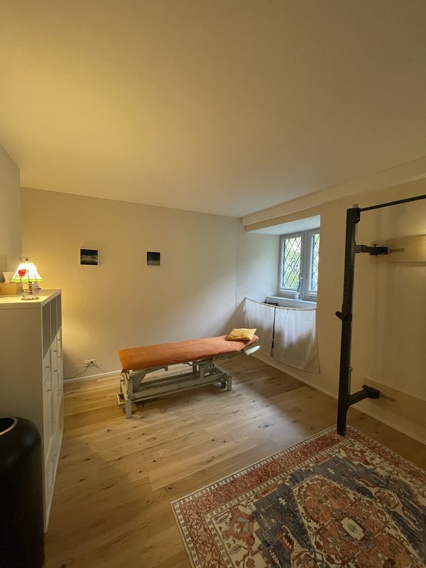 - Therapieliege, elektrisch höhenverstellbar - Natürliche Materialien und Farben - Achtsamkeit für Licht und Geruch - Stauraum - Ruhige Privatatmosphäre - Funktionale Trainingsfläche - Yogamatte - Faszienrolle - Meditationskissen - Prive WC