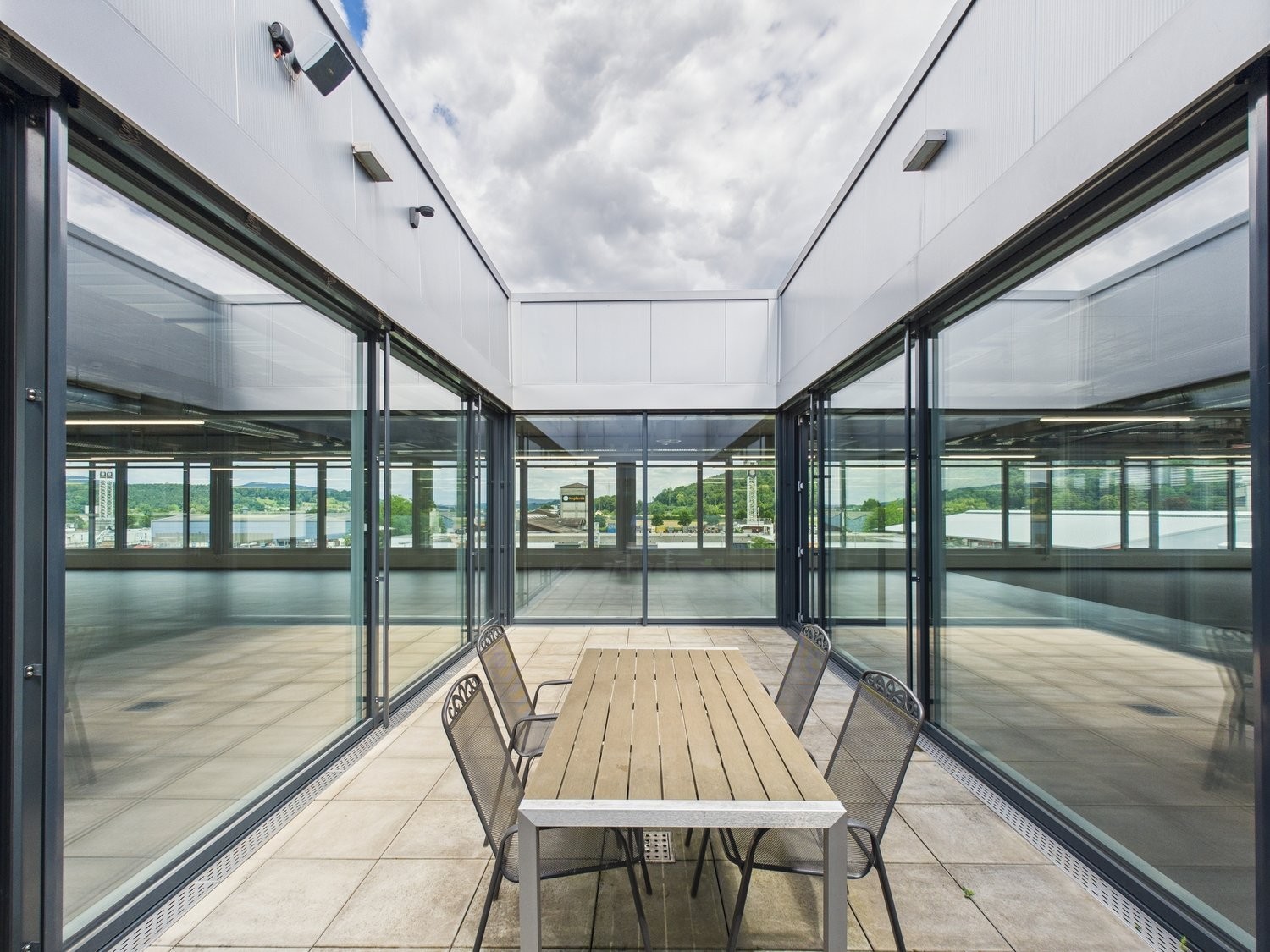 Helle Atmosphäre: Grosse Glasfronten sorgen für viel Tageslicht und schaffen eine einladende Arbeitsatmosphäre