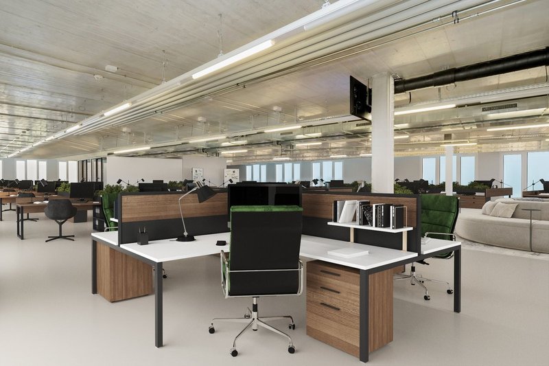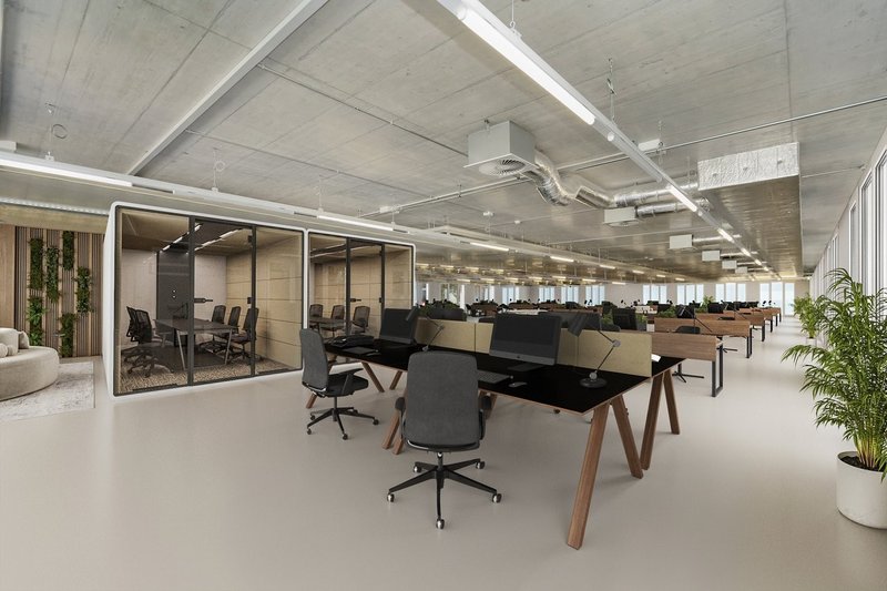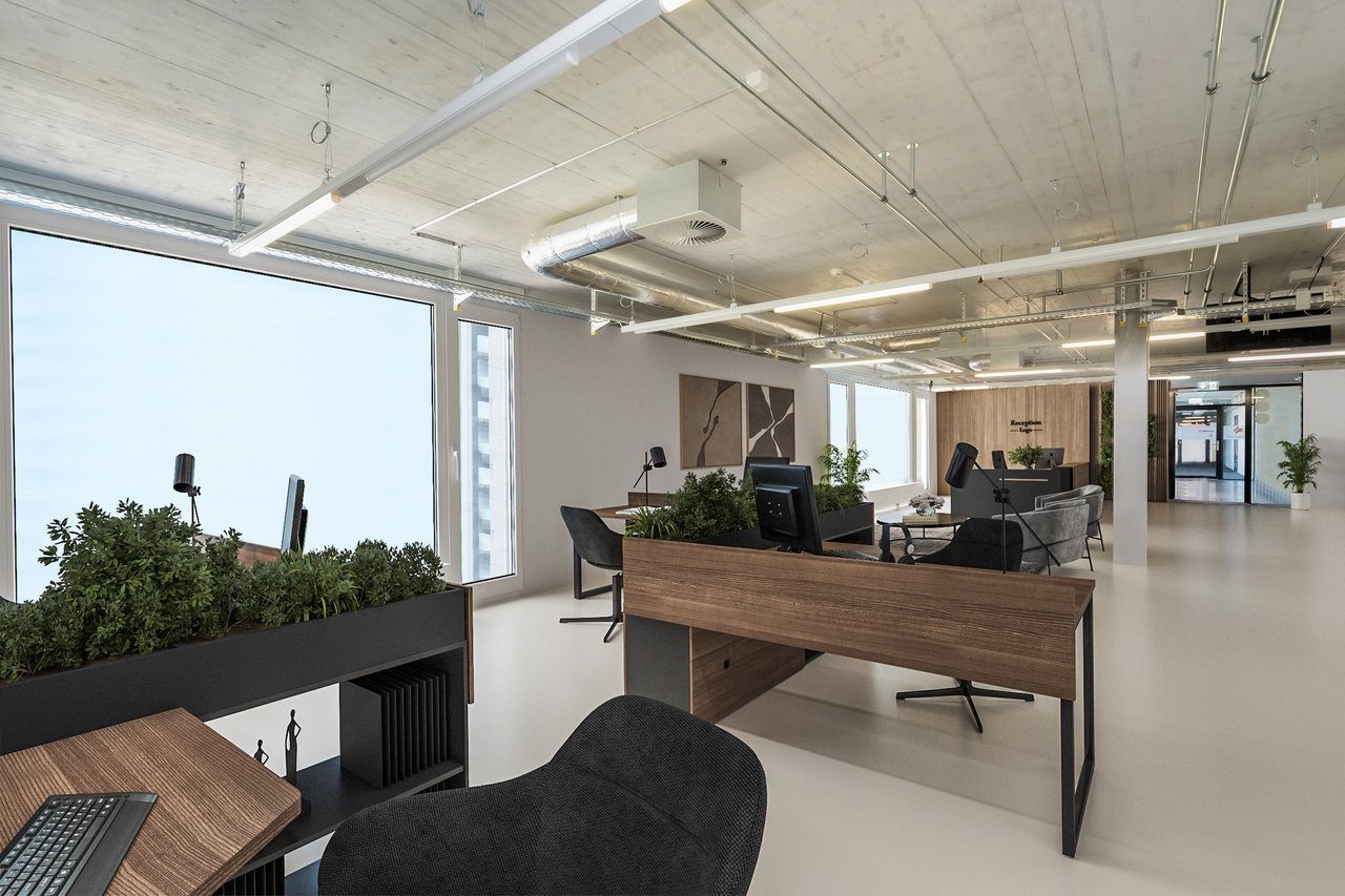 - Helle Büroflächen mit moderner Ausstrahlung und idealer Tageslichtversorgung.