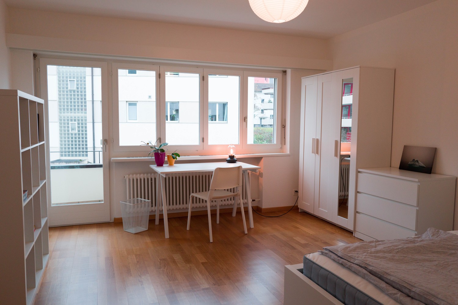 A bright, fully furnished 18 m² room with its own private balcony is available in a quiet and well-maintained 3-room shared flat in Albisrieden, Zurich city. The location is excellent: just 1 minute from Fellenbergstrasse tram/bus stop (Tram 3, Bus 67), 2 minutes from Coop, 3 minutes from Migros and around 10 minutes from Uetliberg.