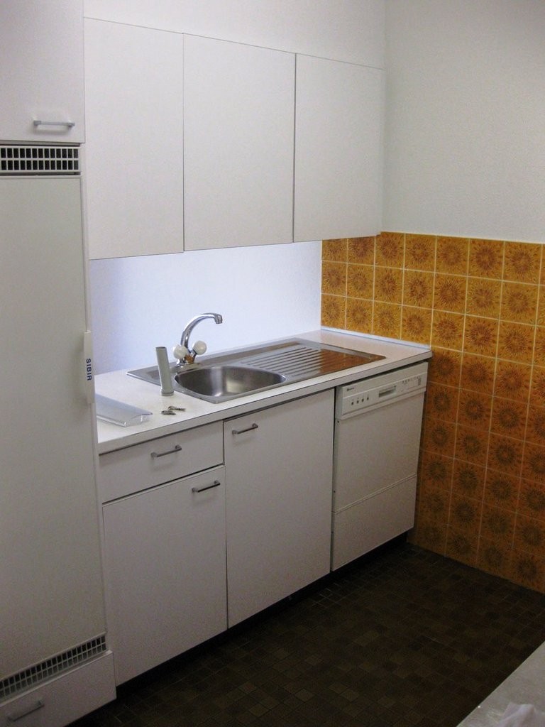 - Halboffener Küche mit Geschirrspüler und Plattenboden