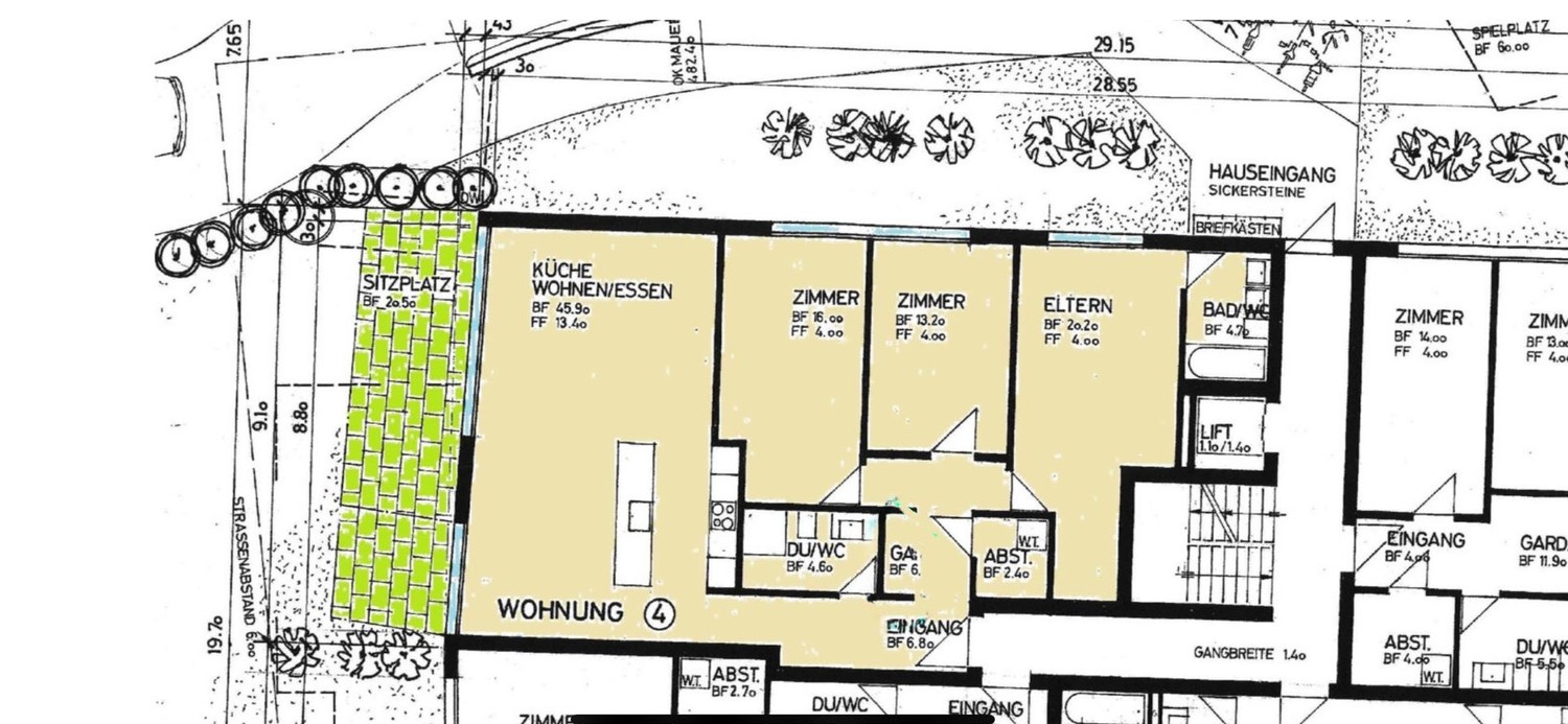 Zwei Einstellhallenplätze sind der Wohnung zugeteilt und müssen dazu gemietet werden.